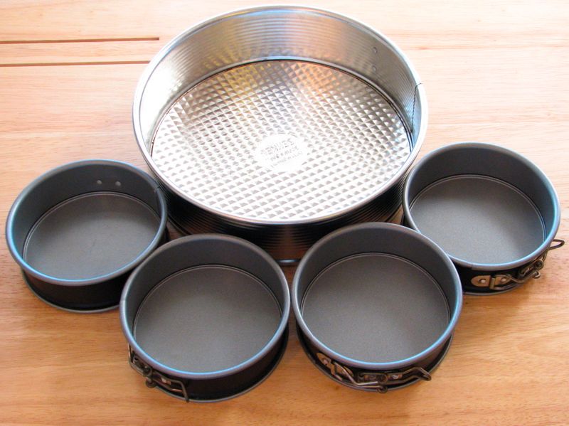 For this demonstration we’ll be making one large pizza in a ten inch springform and four small ones in four-and-a-half inch mini springforms.